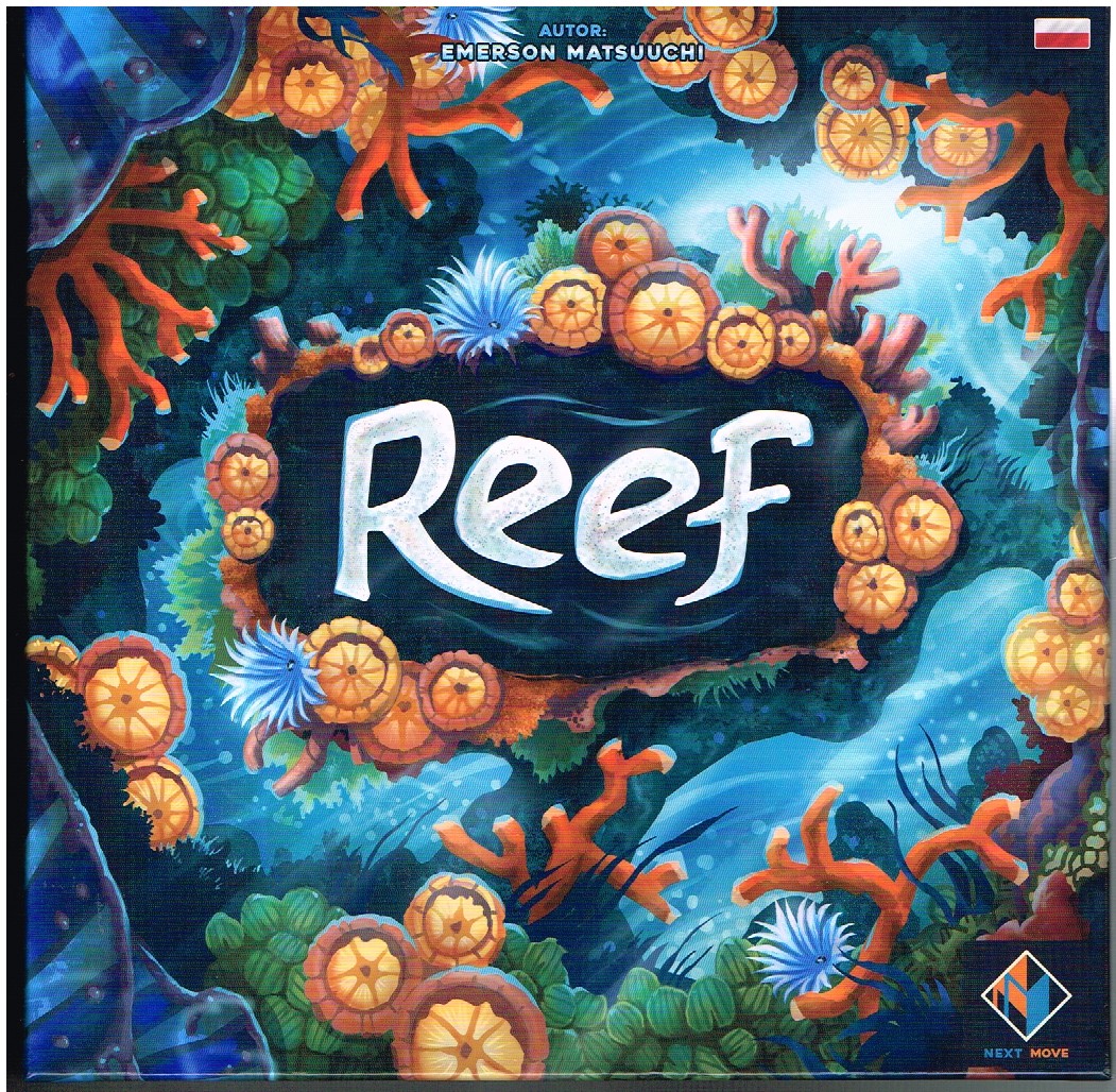 Reef / Emerson Matsuuchi ; ilustracje Chris Quilliams ; edycja polska Michał Herman, Marek Baranowski. - Warszawa : Foksal, 2019. - 1 pudełko (4 plansze graczy; 112 fragmentów rafy (po 28 w 4 kolorach); 88 żetonów punktów (44x1, 10x3, 15x5, 15x10, 4x20); 60 kart; instrukcja) ; 26x26 cm.