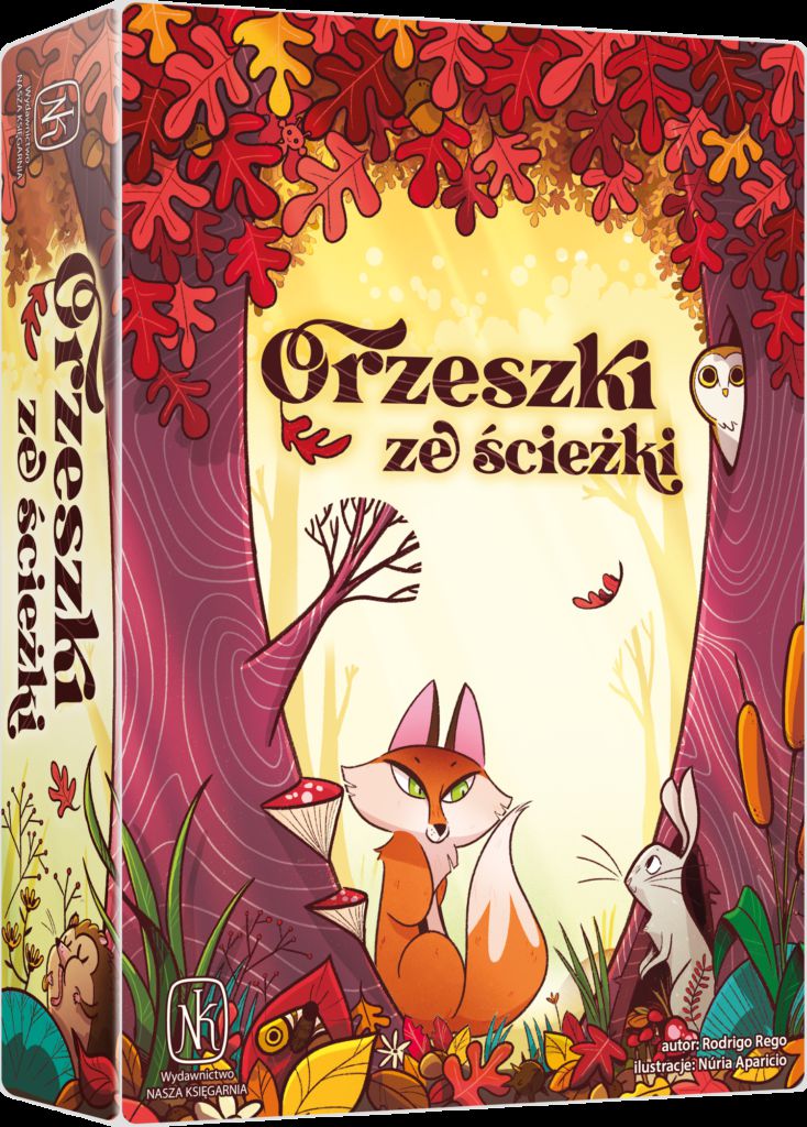 Orzeszki ze ścieżki / Rodrigo Rego ; ilustracje Nuria Aparicio. - Warszawa : Nasza Księgarnia, 2024. - 1 pudełko (plansza; 45 kart ścieżek; 19 kart zwierząt; 9 kart celów; 4 znaczniki graczy; 15 znaczników wody; 15 znaczników kryjówek; kogut; materiałowy woreczek; instrukcja) ; 19x14 cm.